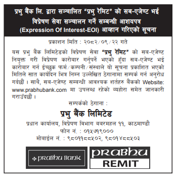 EOI for "Prabhu Remit" Sub Agent notice 2026